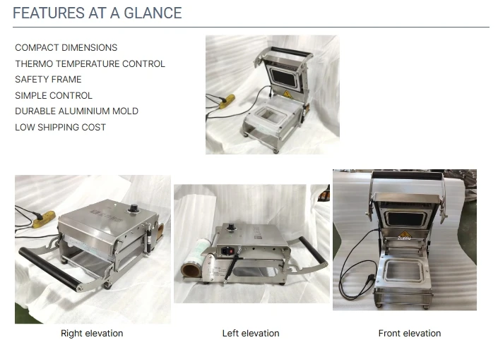This tray sealer machine is widely used in various food shops, beverage shops, catering shops, restaurant,supermarkets and other food process shops. Can be used for frozen, cold or fresh food, as well as any product which can be put in a container, such as microwaved food, preserved foods, cold/hot food, agriculture products, dry food, cosmetics, or plastic items.
