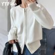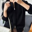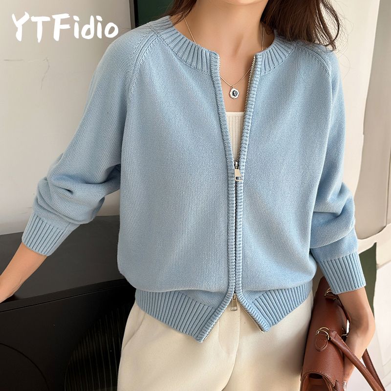 YTFidio 100% Cotton Women O-neck Thick Zipper Solid Cardigan Luxury Designer Clothing Woman Pullover Female Tops 401