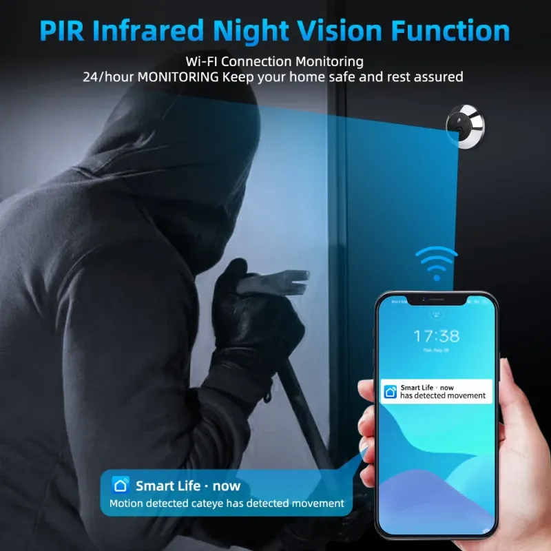 Elevate home security with Yuezhe's Smart WiFi 3MP Video Door Peephole Camera, seamlessly integrating with Tuya for remote monitoring.