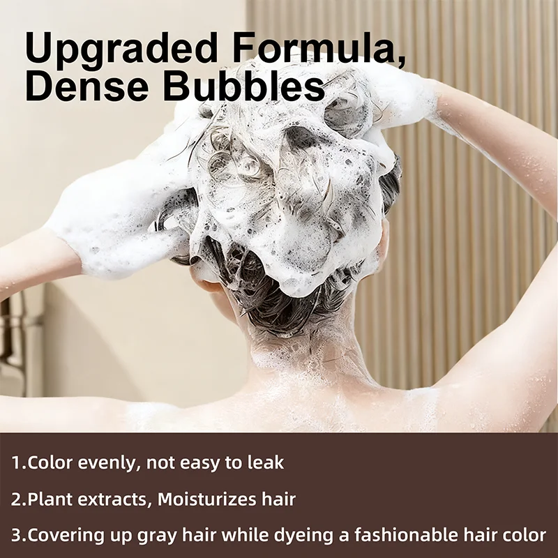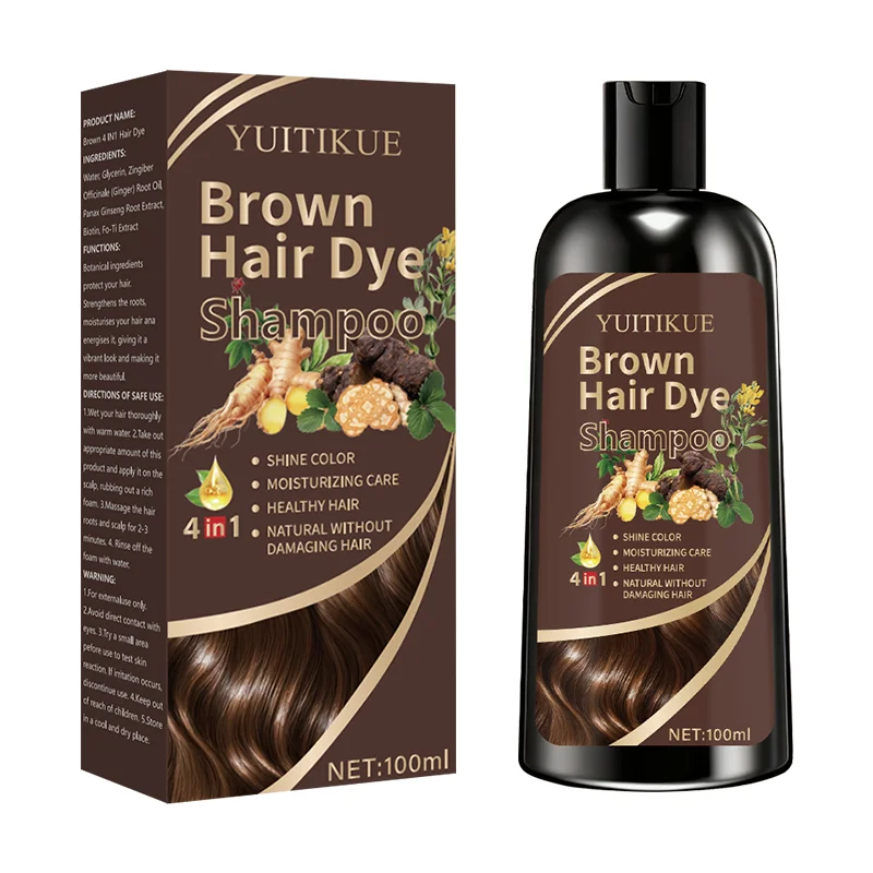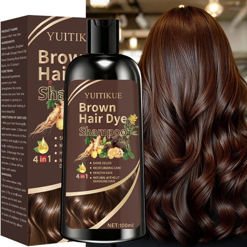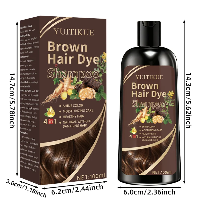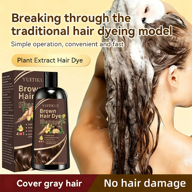YUITIKUE Brown Hair Dye Shampoo 100ml - 4-in-1 Plant Formula, Covers Gray Hair with Natural Color, Easy & No Damage