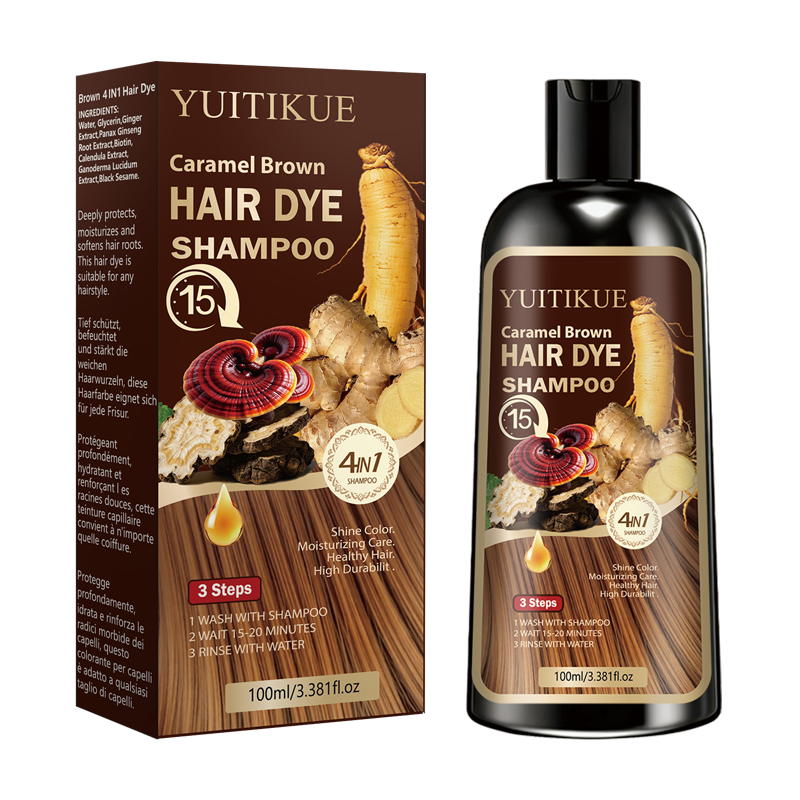 YUITIKUE Caramel Brown Hair Dye Shampoo - 4in1 Moisturizing Hair Color Shampoo Long-Lasting Hair Dye for All Hair Types
