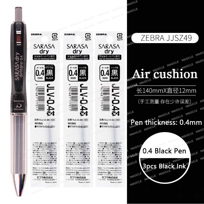 Zebra Japan Airfit black gel pen, anti-fatigue, quick-drying 0.4mm,0.5mm