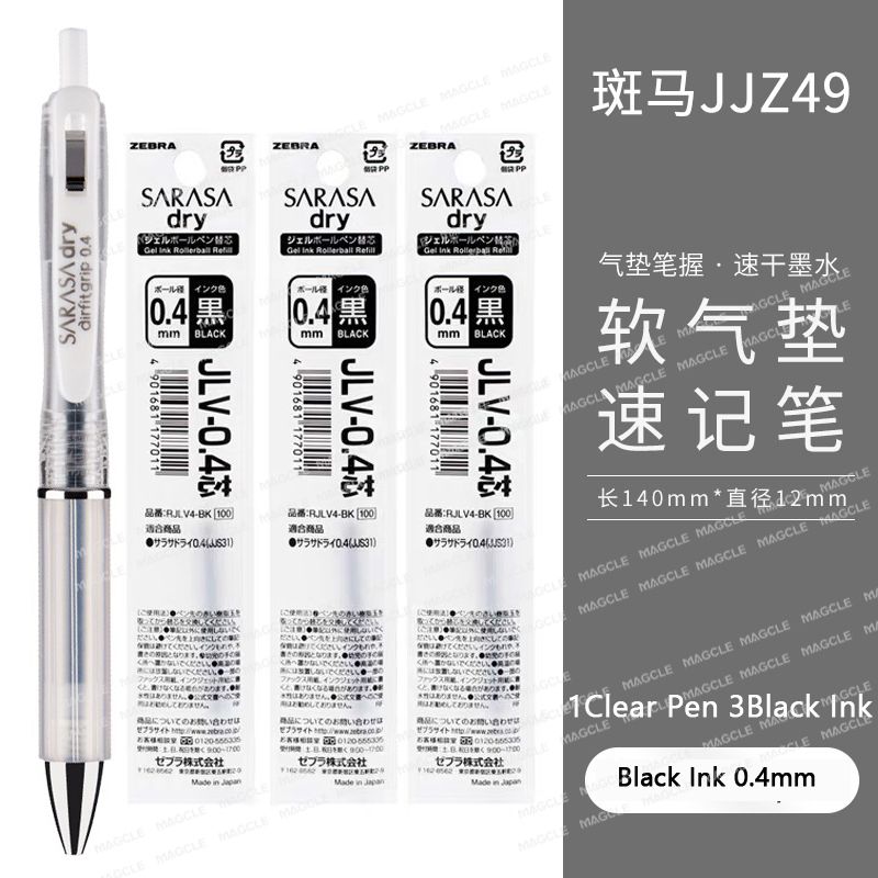 Zebra Japan Airfit black gel pen, anti-fatigue, quick-drying 0.4mm,0.5mm