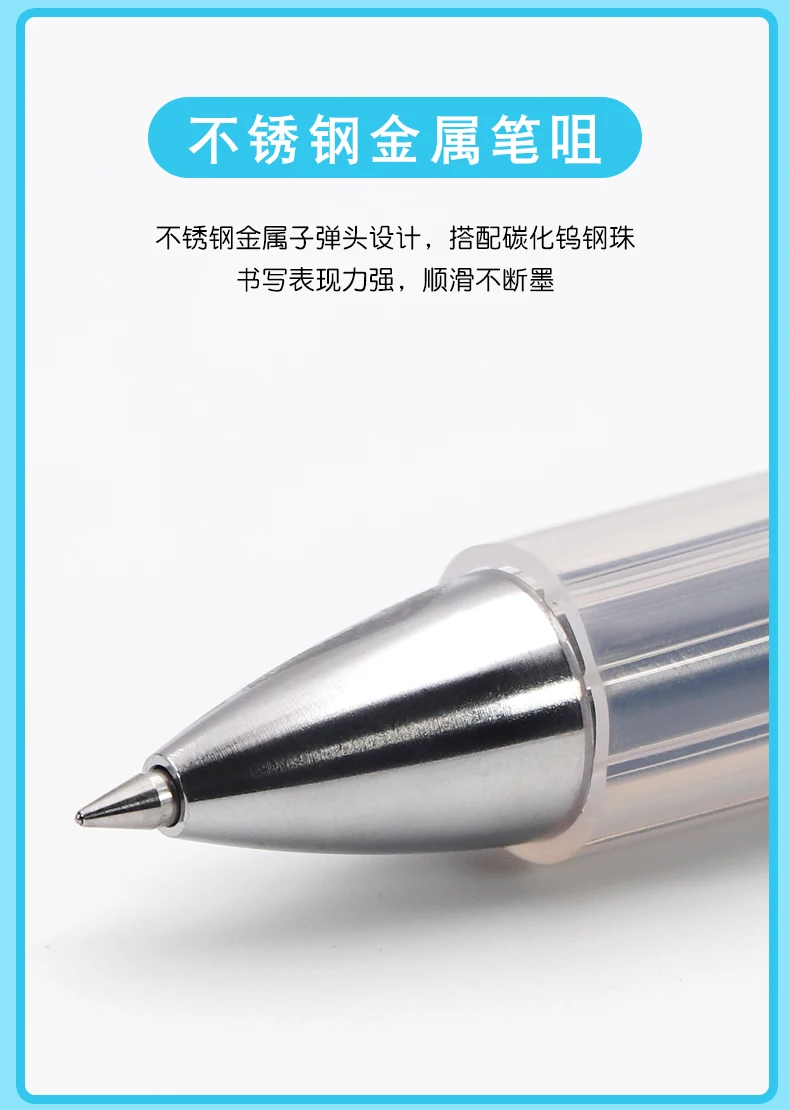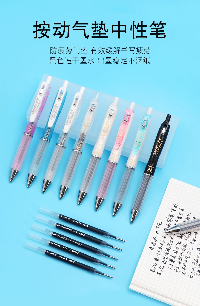1. Air cushion gel pen; anti-fatigue cushion, effectively relieves writing fatigue; black quick-drying ink, stable ink without feathering