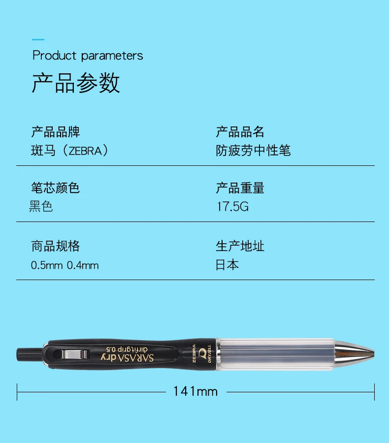 Zebra Japan Airfit black gel pen, anti-fatigue, quick-drying 0.4mm,0.5mm