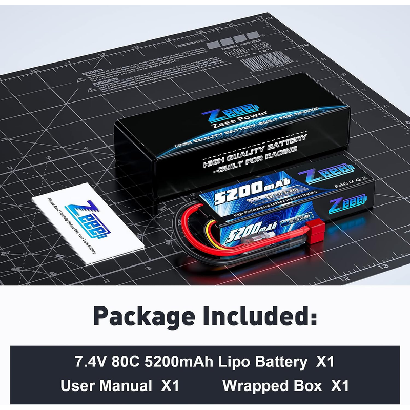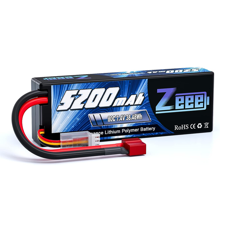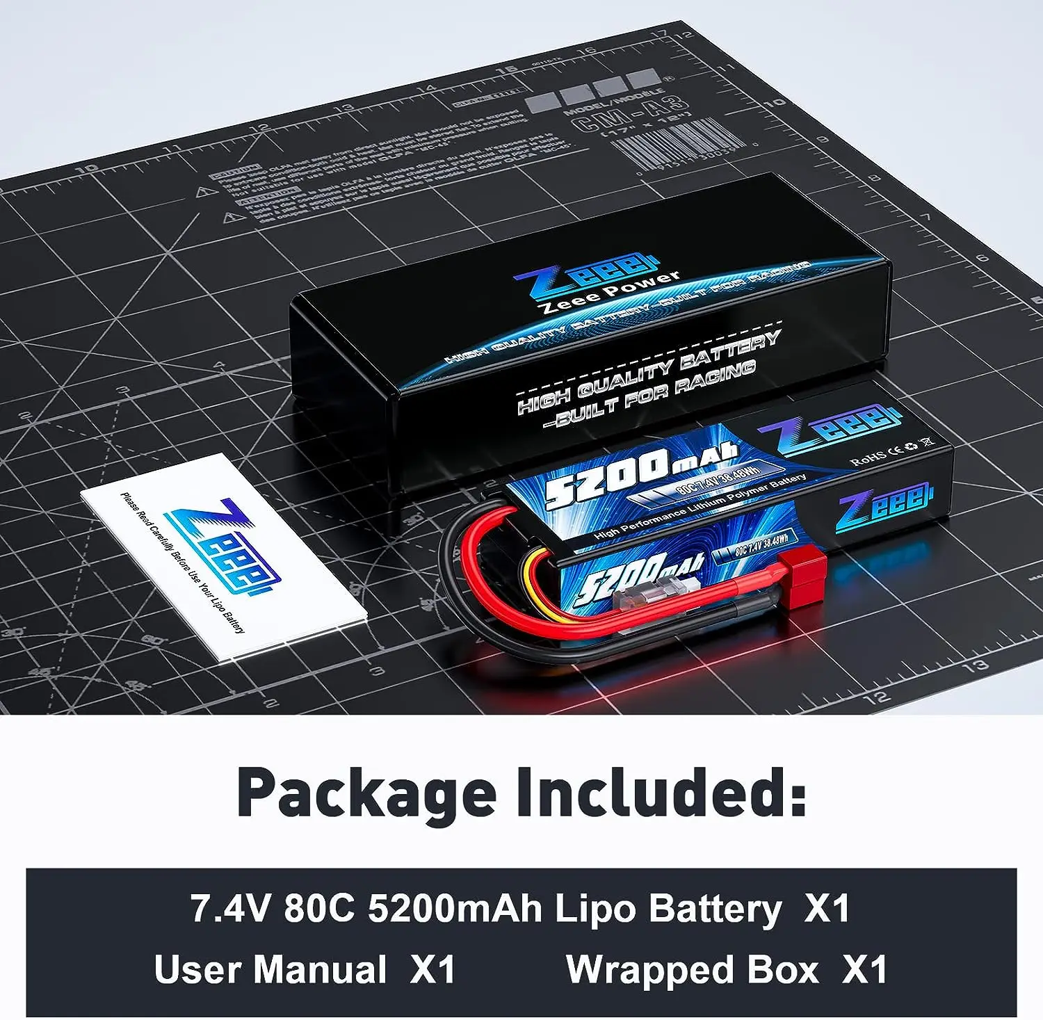 Zeee 2S Lipo Battery 7.4V 80C 5200mAh Hardcase T Plug for 1/8 1/10 RC Car Truck Tank RC Buggy Truggy RC Airplane Racing Parts
