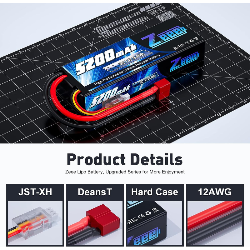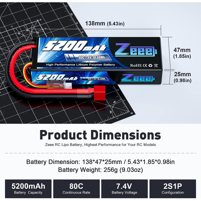 1pc Zeee 7.4V 80C 2S 5200mAh RC LiPo Battery Hard Case with Deans/T Plug