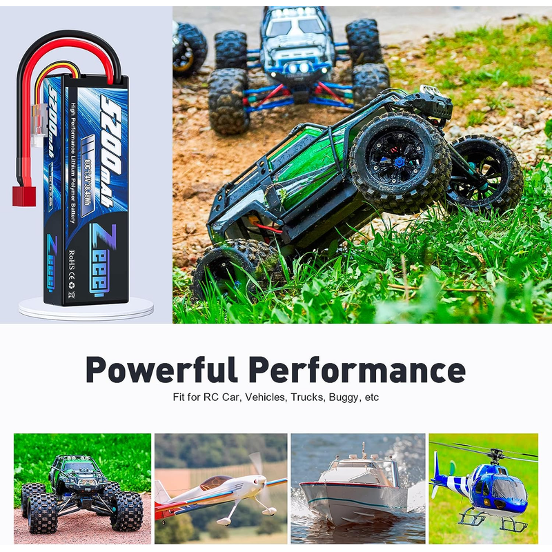 Zeee 5200mAh 7.4V 2S 80C Lipo Battery specially designed for professional 1/10 scale and 1/8 scale RC car hobby models such as:Emaxx, Bandit, Rustler version, Losi, Team Associated, etc. - It also could be used for RC airplane, RC helicopter, RC boat, drone, FPV. - For RC battery, only if the voltage, dimension and plug match, then it will fit.
