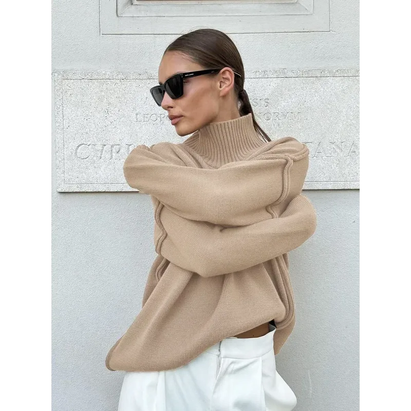 Zekey Autumn Winter Women's Solid Color Knitted Turtleneck Sweater Female Warm FashionThick Loose Casual Pullovers