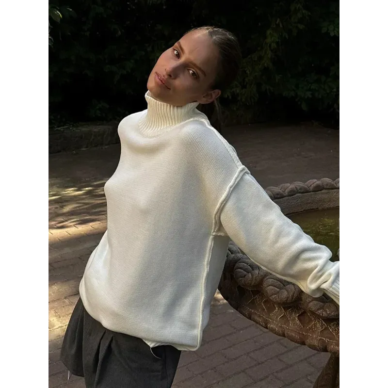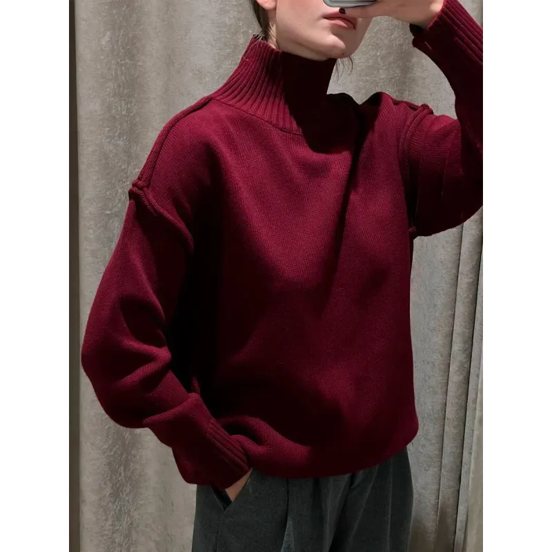 Zekey Autumn Winter Women's Solid Color Knitted Turtleneck Sweater Female Warm FashionThick Loose Casual Pullovers