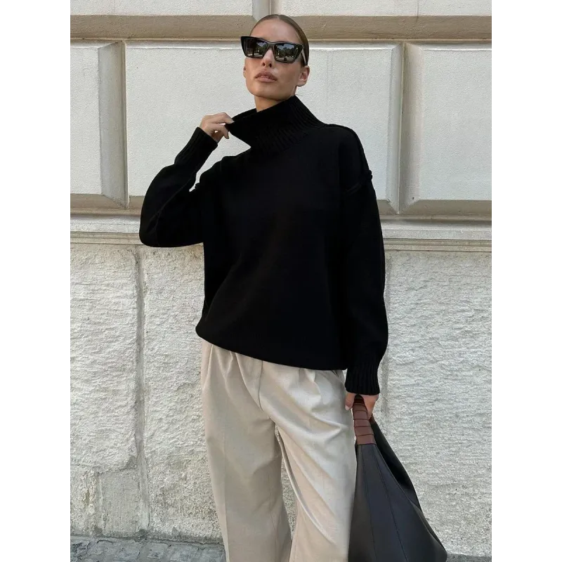 Zekey Autumn Winter Women's Solid Color Knitted Turtleneck Sweater Female Warm FashionThick Loose Casual Pullovers