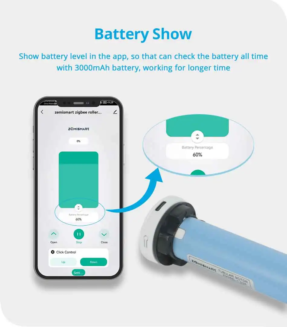 Zemismart Zigbee Roller Shade Motor with Battery For 37 38mm Tube Works with Tuya and Smart Life APP Alexa Google Home Control