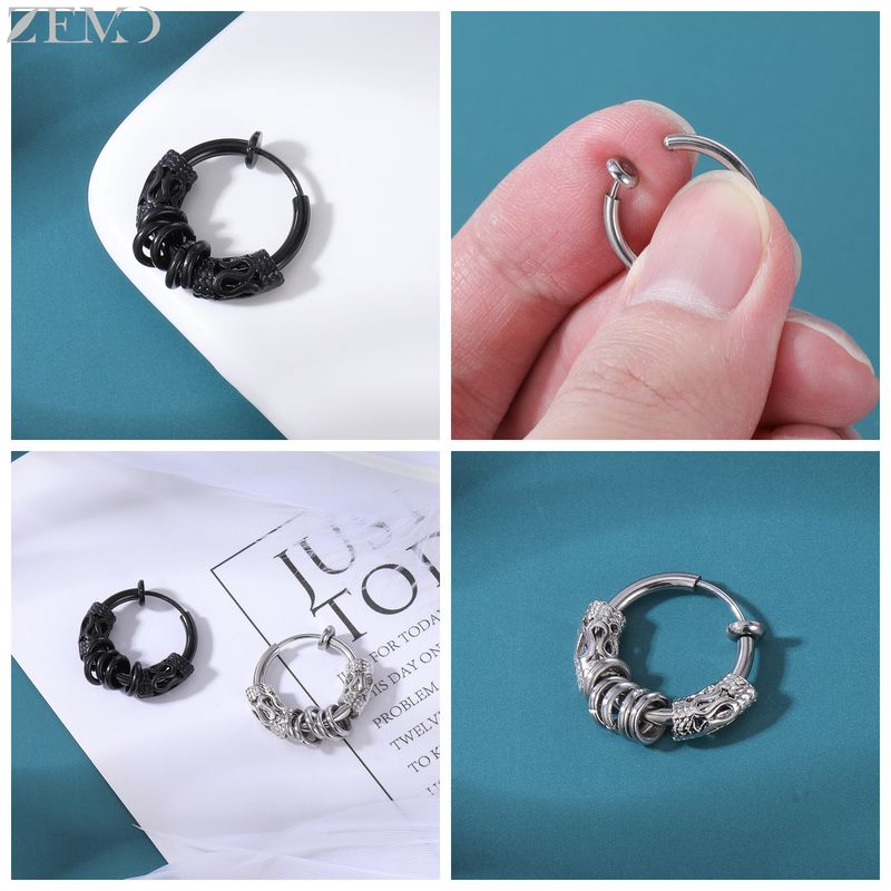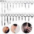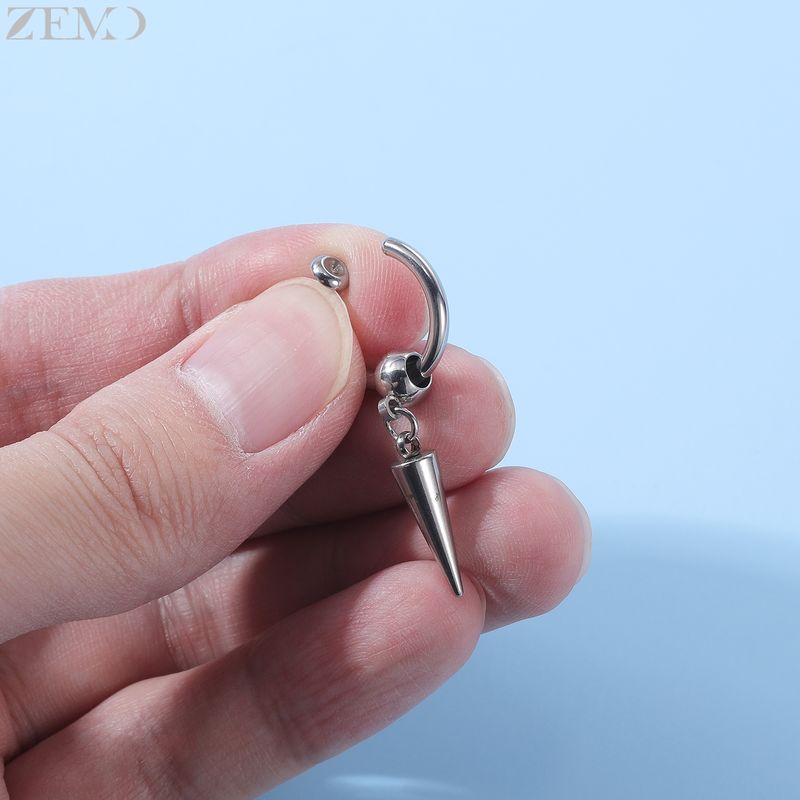 ZEMO 1 PC Punk Stainless Steel Clip-on Earrings Long Tassel Pendant Earring Taper Cross Feather No-Pierced Fake Piercing 12/14MM
