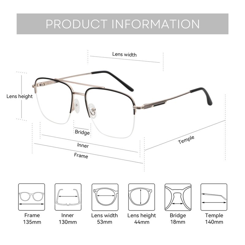 Please do check frame size The ruler in the picture cannot be used to measure your old glasses. Please use your measuring tool to check the size of old pair of glasses.(2-3mm difference acceptable) |