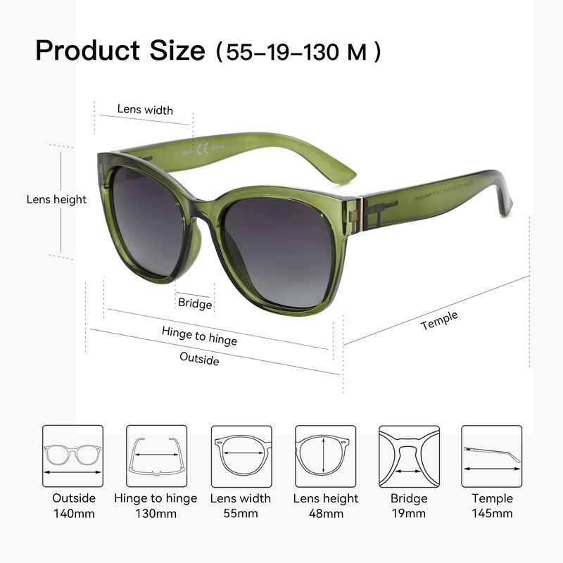 [Product Dimension] -Lens Width: 55mm, Lens Height: 48mm, Temple Length: 145mm, Nose