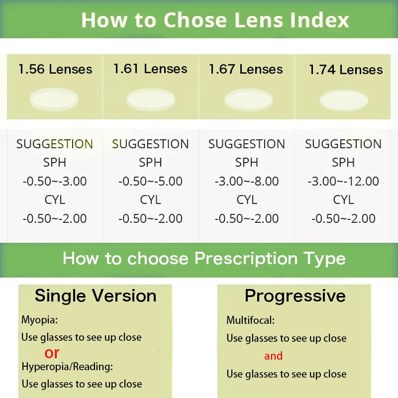 2. How to choose the refractive index of lenses (1.56/1.61/1.67/1.74)