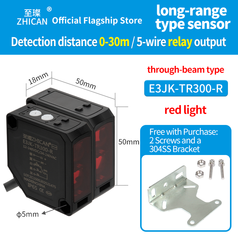 Zhican Diffuse Reflection 2.5m Wide Square Photoelectric Sensor E3Jk-Rr12/Dr11 Distance Adjustable for Mirror Reflection