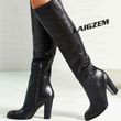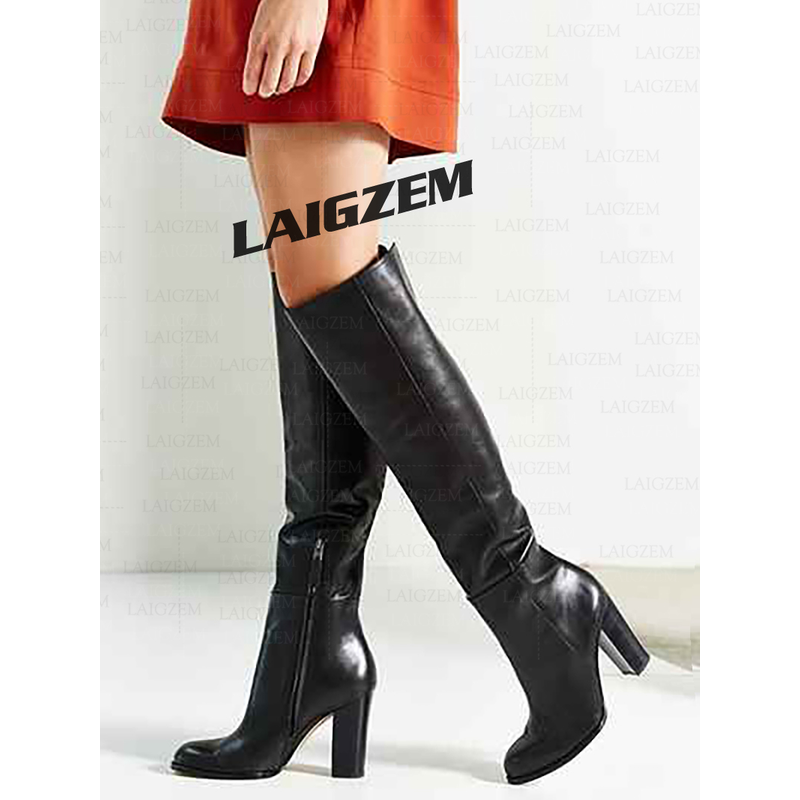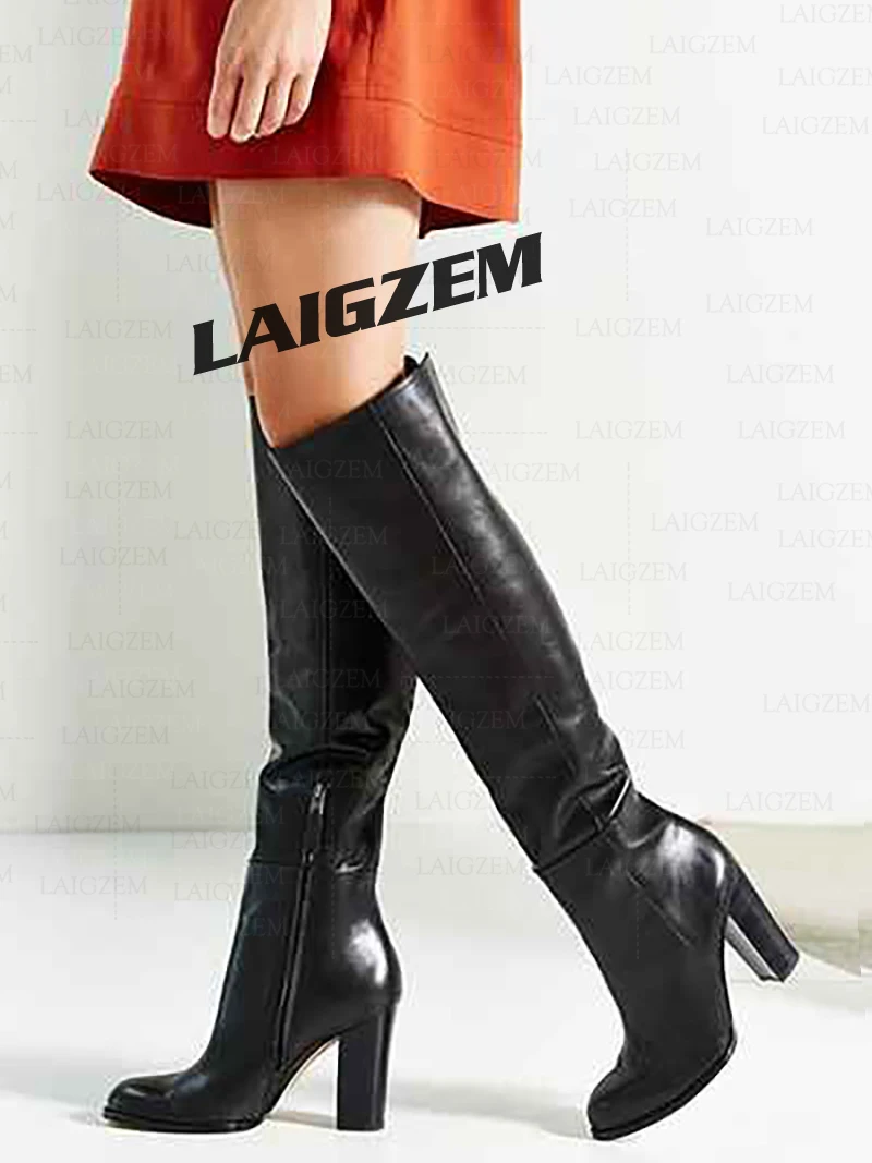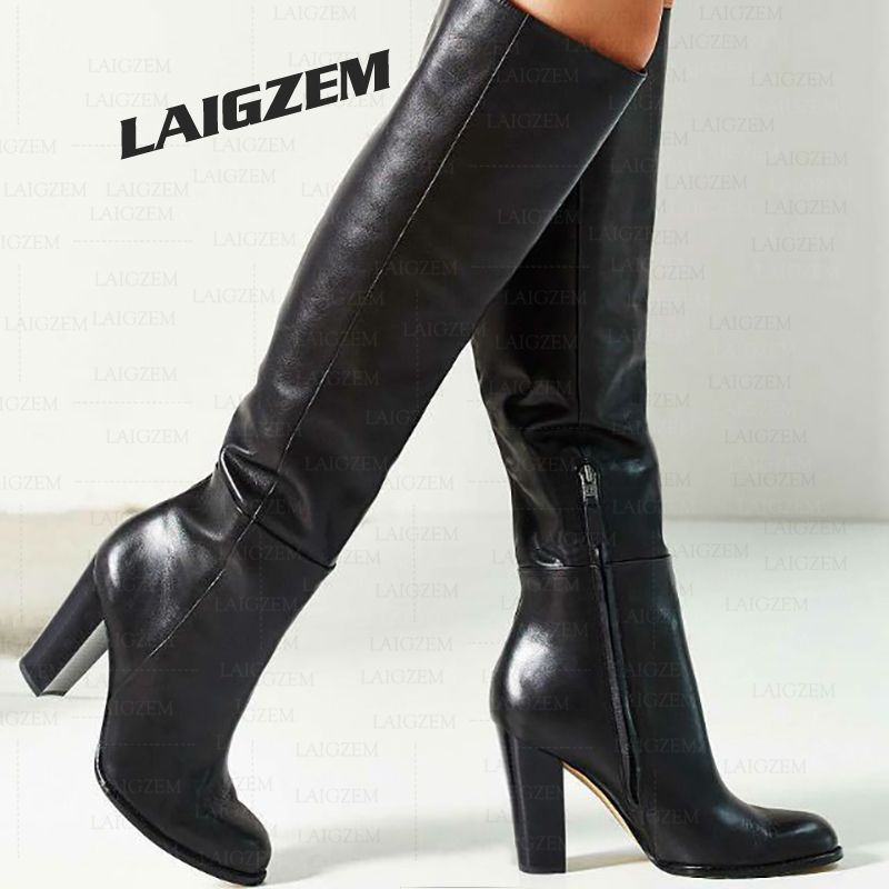 ZHIMA Women Knee High Boots Platform Thick High Heels Faux Leather Boots Handmade Ladies Shoes Woman Big Size 41 43 48 50 52