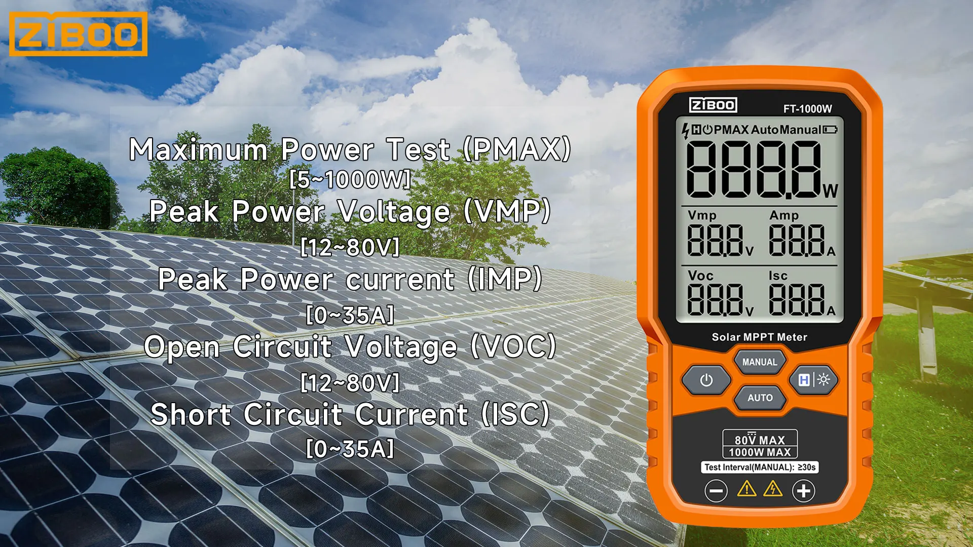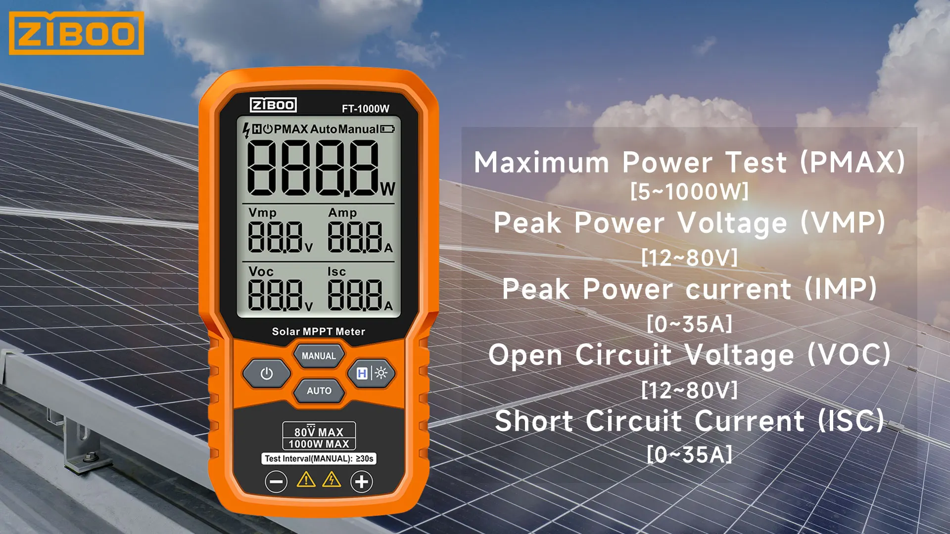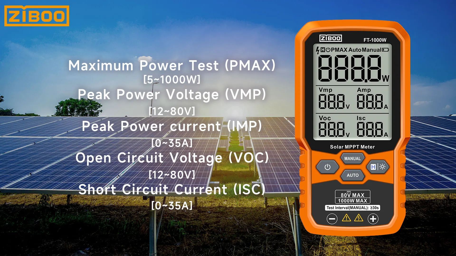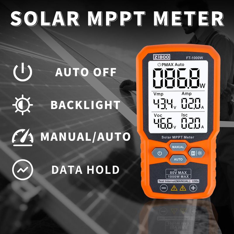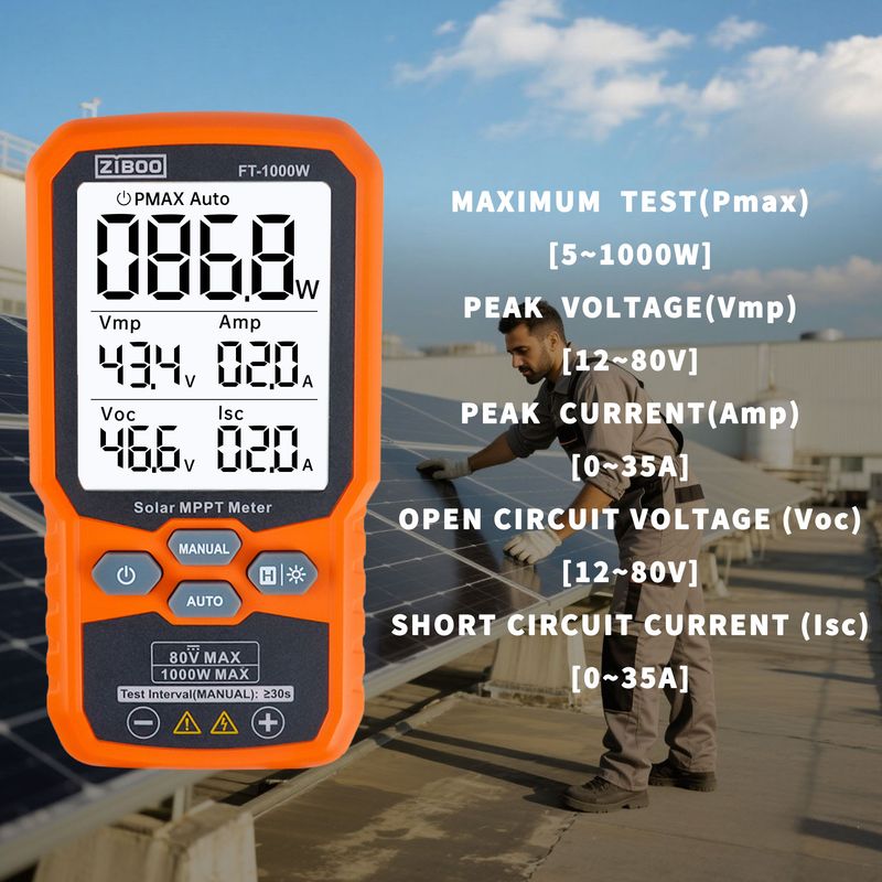 ⚡Professional-Grade PV TestingMeasures maximum power (Pmax) up to 1000W, open-circuit voltage (Voc: 12-80V), and short-circuit current (Isc: 35A) with ±0.8% accuracy, ideal for validating solar panel performance in R&D, manufacturing, and field maintenance.