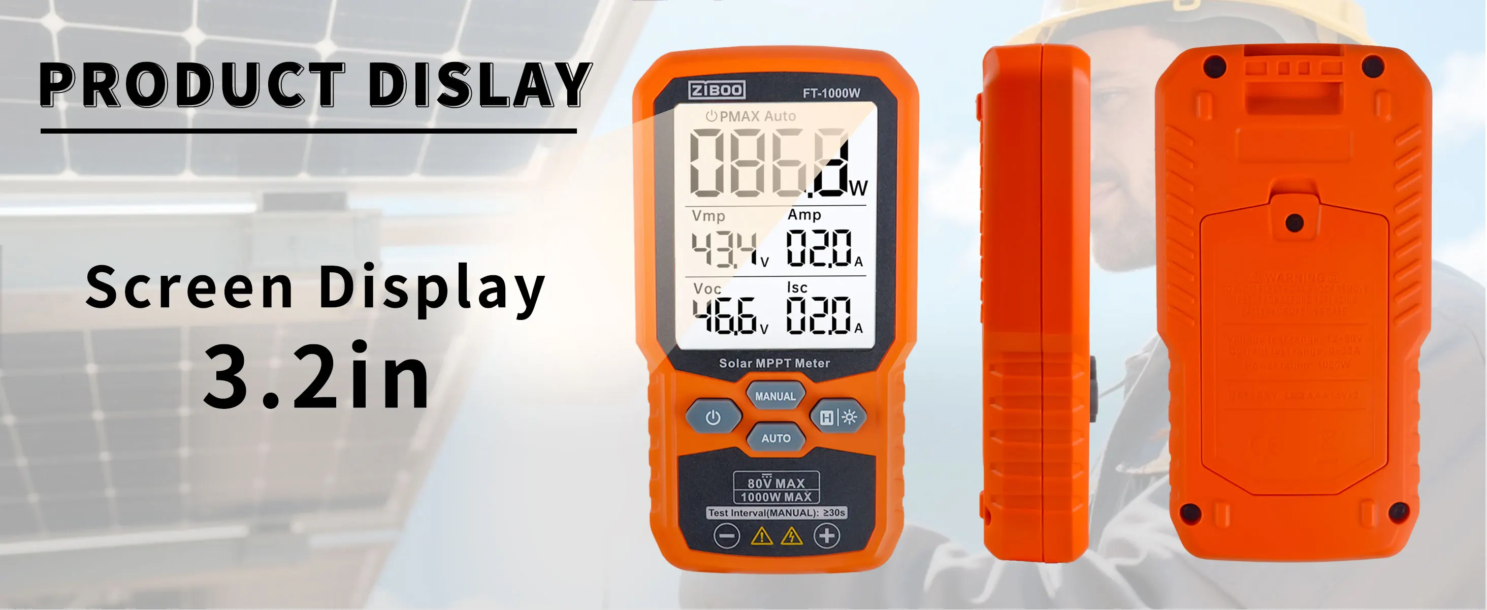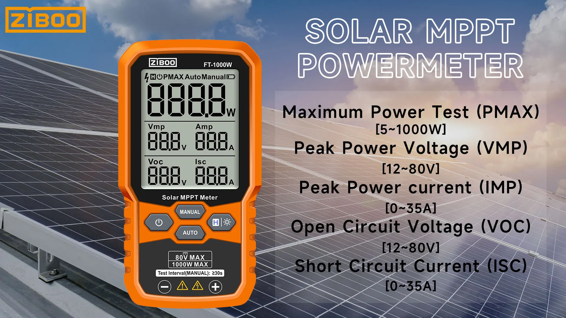 Tracks Vmp (80V) & Amp (35A) in real-time to identify panel degradation or shading issues, helping installers maximize energy harvest and ROI for residential/commercial systems.