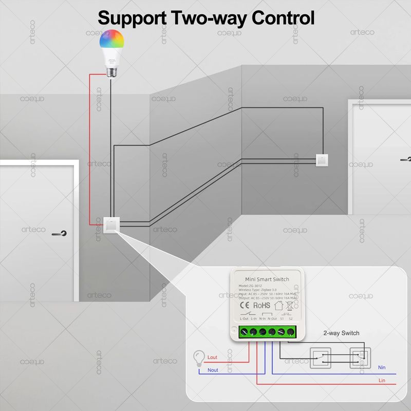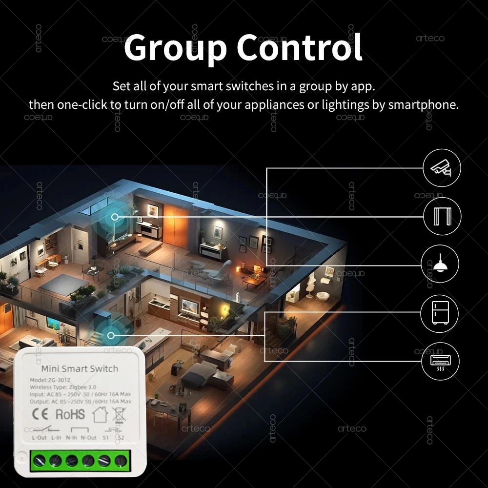 ZigBee 3.0 Smart Mini DIY Switch Automation Module 16A Relay Support 2 Way Control App Remote Control Zigbee Gateway Required