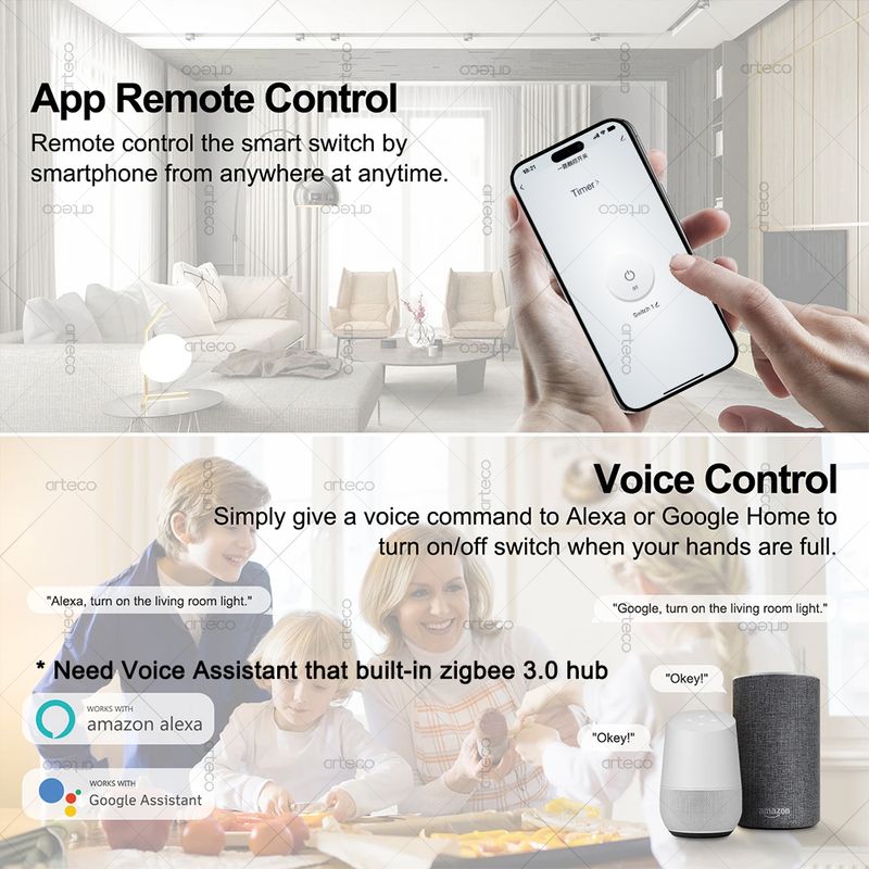 Voice Control: Compatible with Alexa Google Home Voice Control  (* it does not link device via smart life nor tuya smart app,Need to be connected by Voice Assistant that built-in zigbee 3.0 hub.)