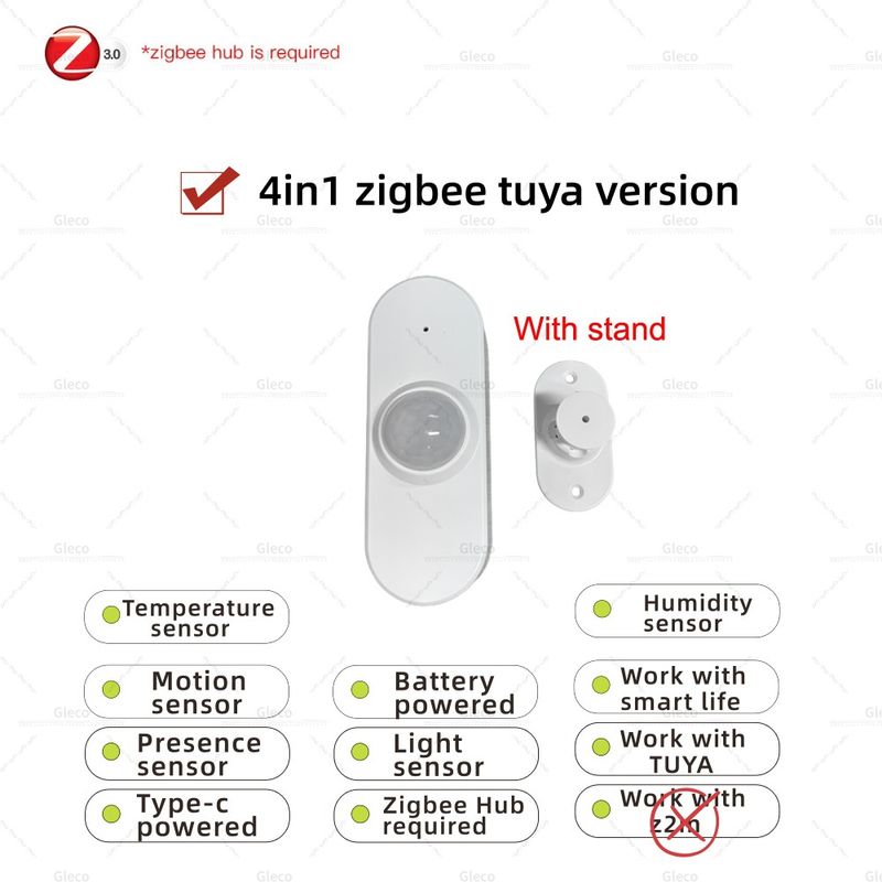Zigbee Human Presence Sensor PIR Motion Detector Luminance Temperature Humidity Detection App Monitor For TUYA Smart Life Z2M