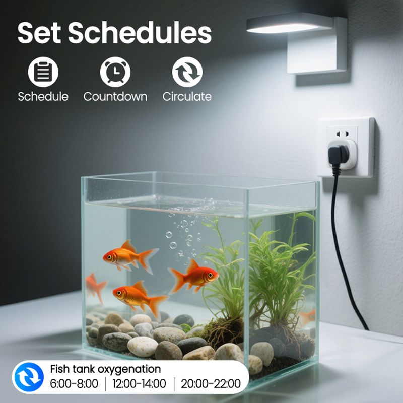 Custom Schedules: Set your lights, fans, or holiday décor to auto-adjust based on time or sunrise/sunset.
