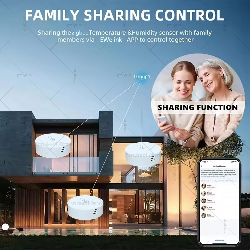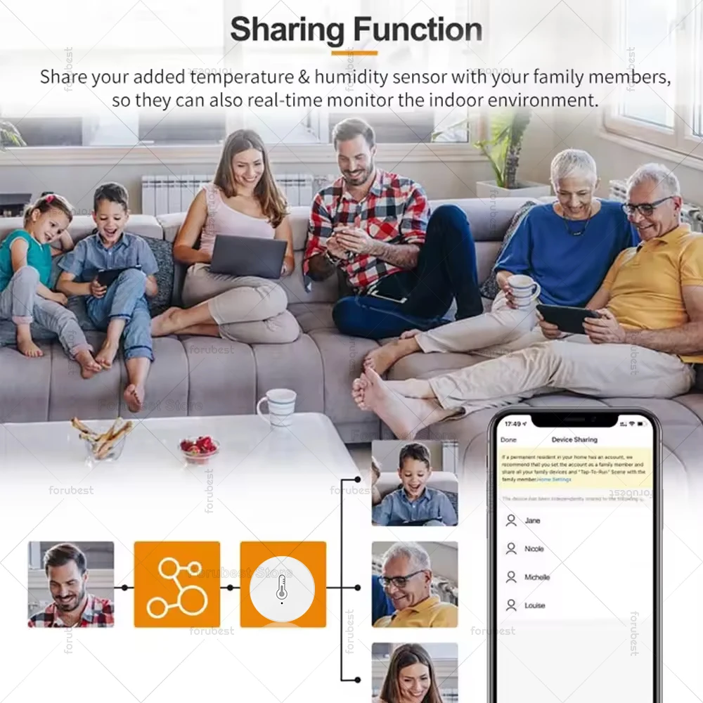 【Sharing Control】Simply share the sensor to your family on APP and they can directly check this temperature and humidity on their mobile phones without pairing it. forubest store