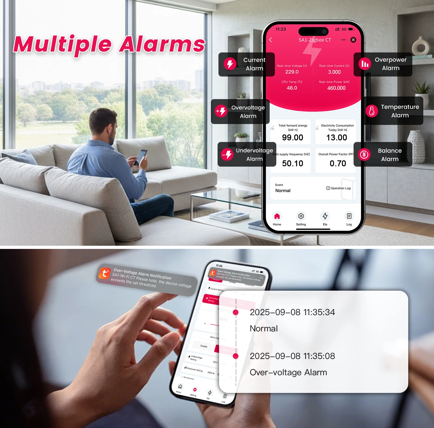 Control (AC) Remotely via Tuya/Smart Life App | Real-Time Alerts | Prepaid Billing Option | Data Export