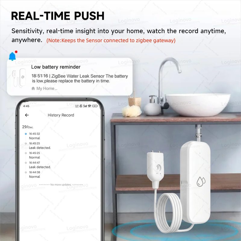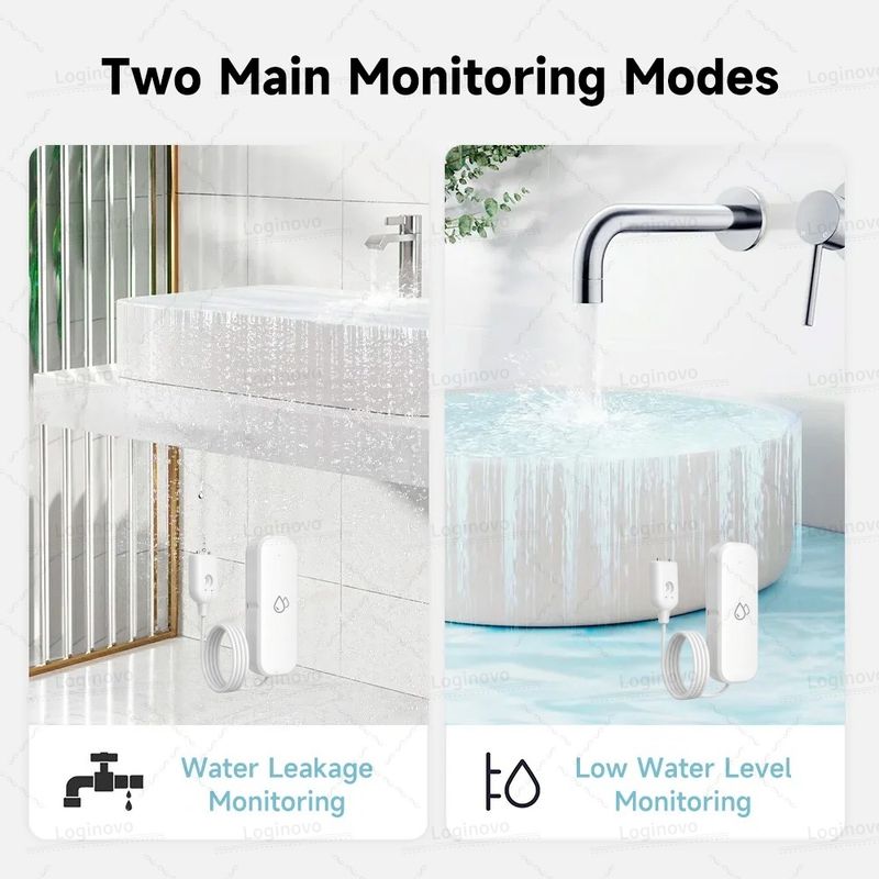This smart water sensor supports Water Leak Detection and Low Water Level Monitoring, instantly detecting leaks, spills, or abnormal water levels. Ideal for preventing damage caused by pipe leaks, appliance failures, or overflowing water.