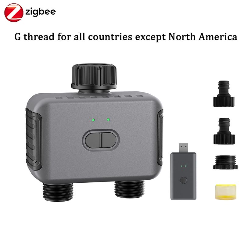 Zigbee/BT Automatic Water Timer Dual Hose Garden Irrigation Watering System Faucet Sprinkler Programmer support Alexa IPX5