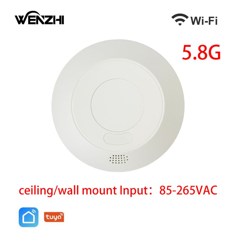 You can install it on the ceiling or wall using double-sided adhesive or expansion screws. The device supports connecting to 85-265V AC power.