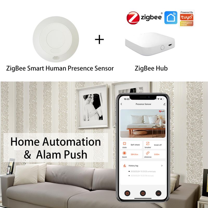 Tuya ZigBee gateway is required for this ZigBee human presence sensor,performing as the center bridge for all Tuya ZigBee smart devices with extremely stable signal and a really good necessity for whole-house intelligence.(note:Tuya ZigBee hub is highly recommended for its wider compatibility than other hubs)