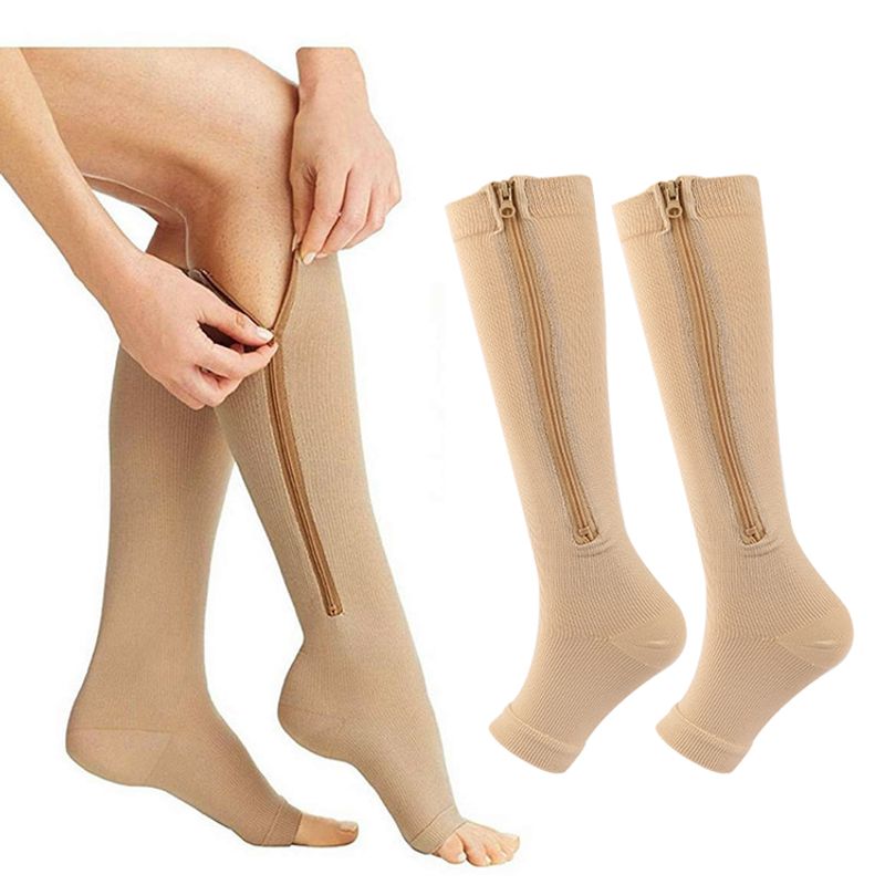 Zipper Compression Socks for Varicose Support Outdoor Running Fitness Hiking Anti-Fatigue Medical Care Diabetes Swelling Relief