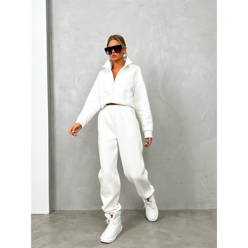 Zipper Fashion Casual Trousers Sweater Casual Suit Khaki M