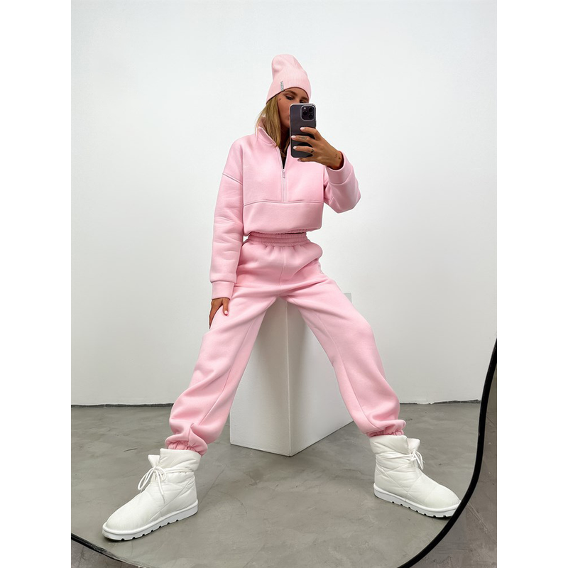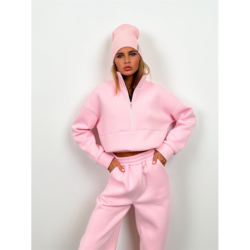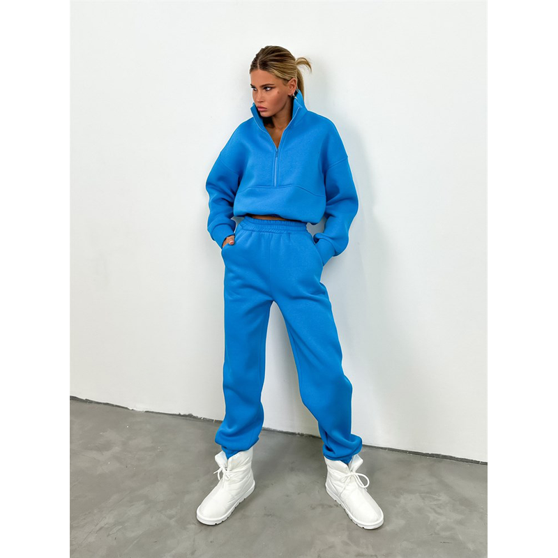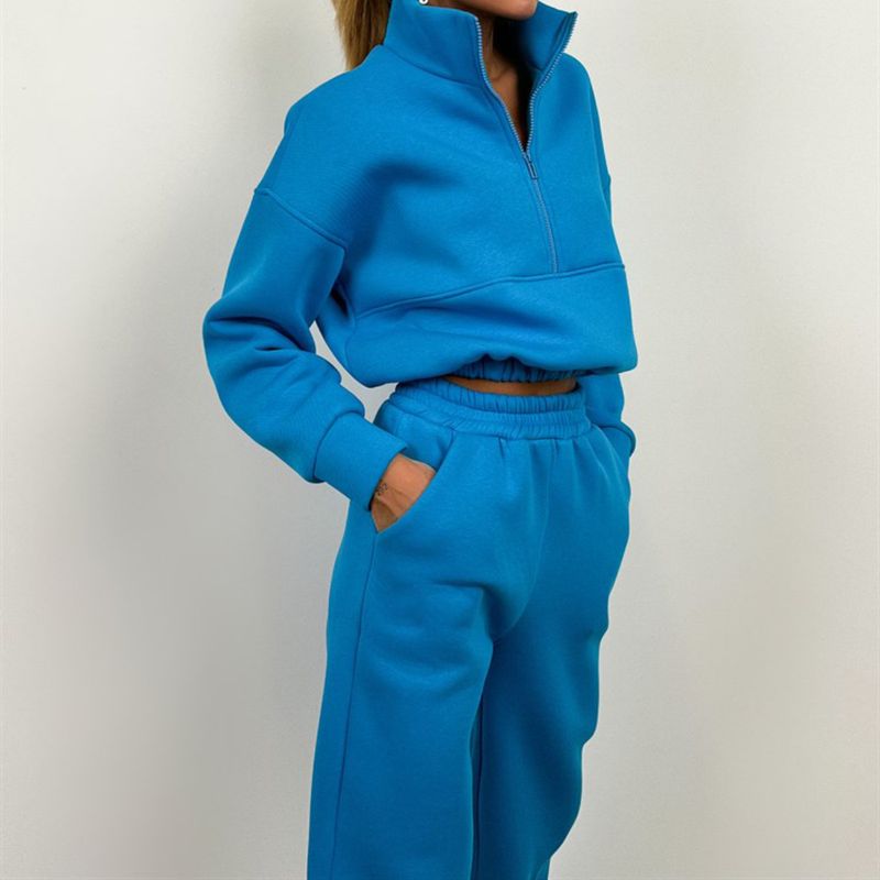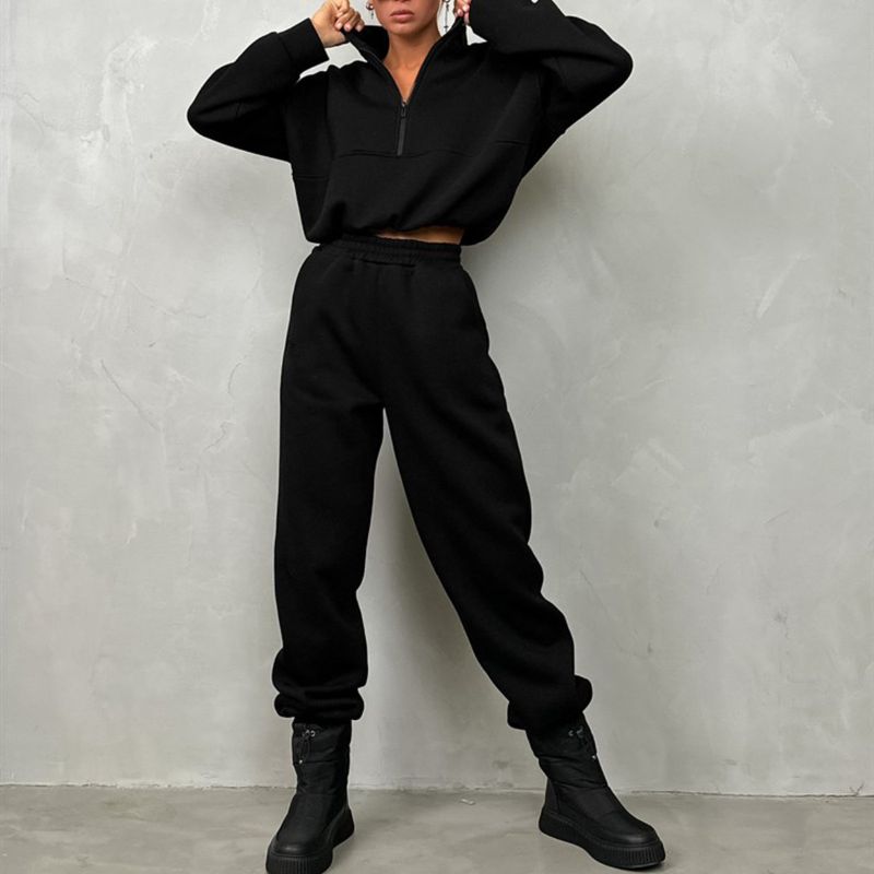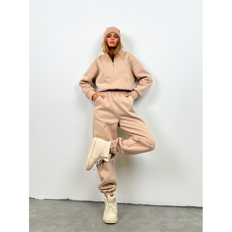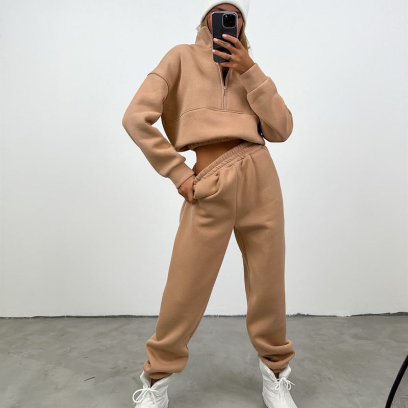 Zipper Fashion Casual Trousers Sweater Casual Suit Khaki S