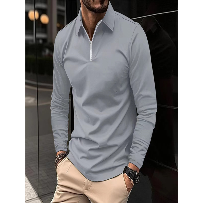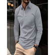 Zipper Men's Solid Color Long Sleeve Sports Polo Shirt Gray M