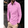 Zipper Men's Solid Color Long Sleeve Sports Polo Shirt Pink XL