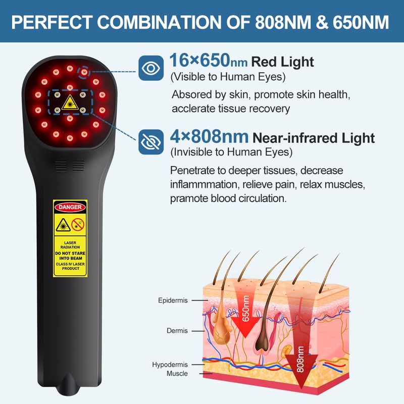 No Pain/Side Effects: Due to the low power grade of the laser therapy, the device will not cause any side effects or pain (heat included) while using this product. It is safe, non-invasive, and effective.