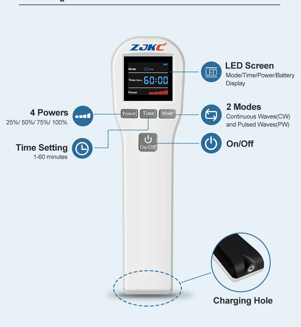 TheZJKC Cold Laser Therapy Device is a handheld little miracle that allows you to get professional grade joint and muscular therapy right from the comfort of your own home. Ditch expensive and time-consuming appointments with therapists and get your life back, on your own terms! Treat sports injuries, arthritic conditions, and any joint or muscular pain with this revolutionary laser device. With deep tissue penetrating lasers that are invisible to the naked eye, you'll notice quick results and more efficient recovery after working out. The Device even works on animals, so your aging pets can also experience joint relief in their twilight years.