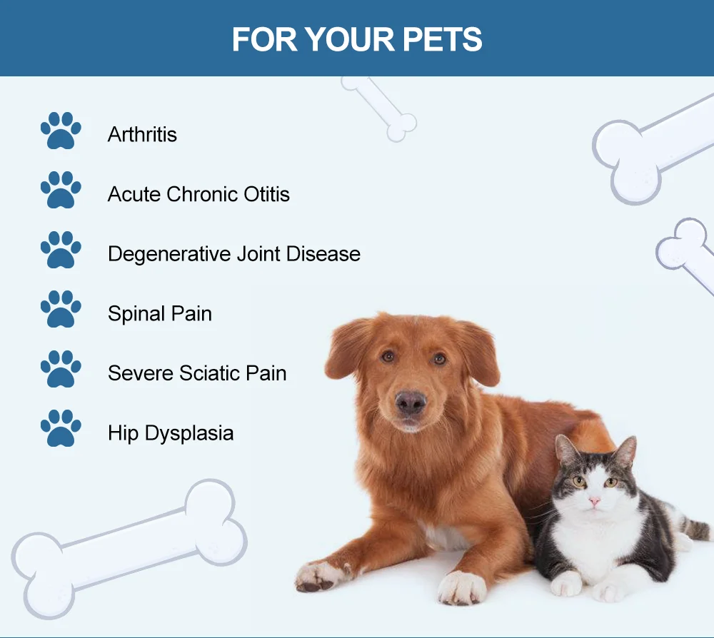 Pain Relief, Open Wounds, Injuries, Acute & Chronic Otitis, Degenerative Disc Disease, Hip Dysplasia, Degenerative Joint Disease, Hot Spots Dermatological Disorders, Arthritis Lick Granulomas, Anal Glands, Musculoskeletal Abnormalities, Paw Pads Swelling Up, Gingivitis Periodontal Disease, Inflammation, Ear Infections, Soft Tissue Injuries, Trauma, Nerve Regeneration