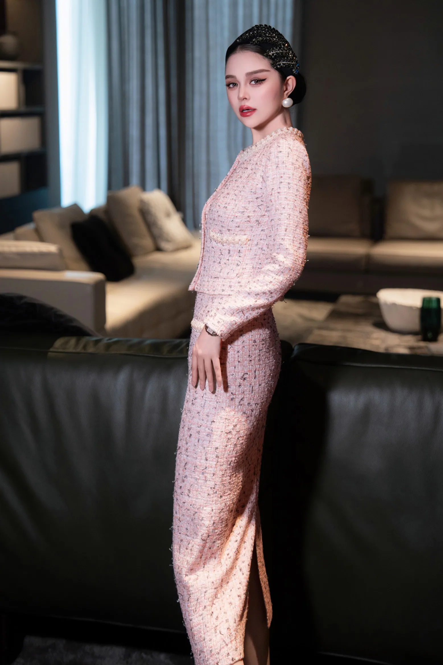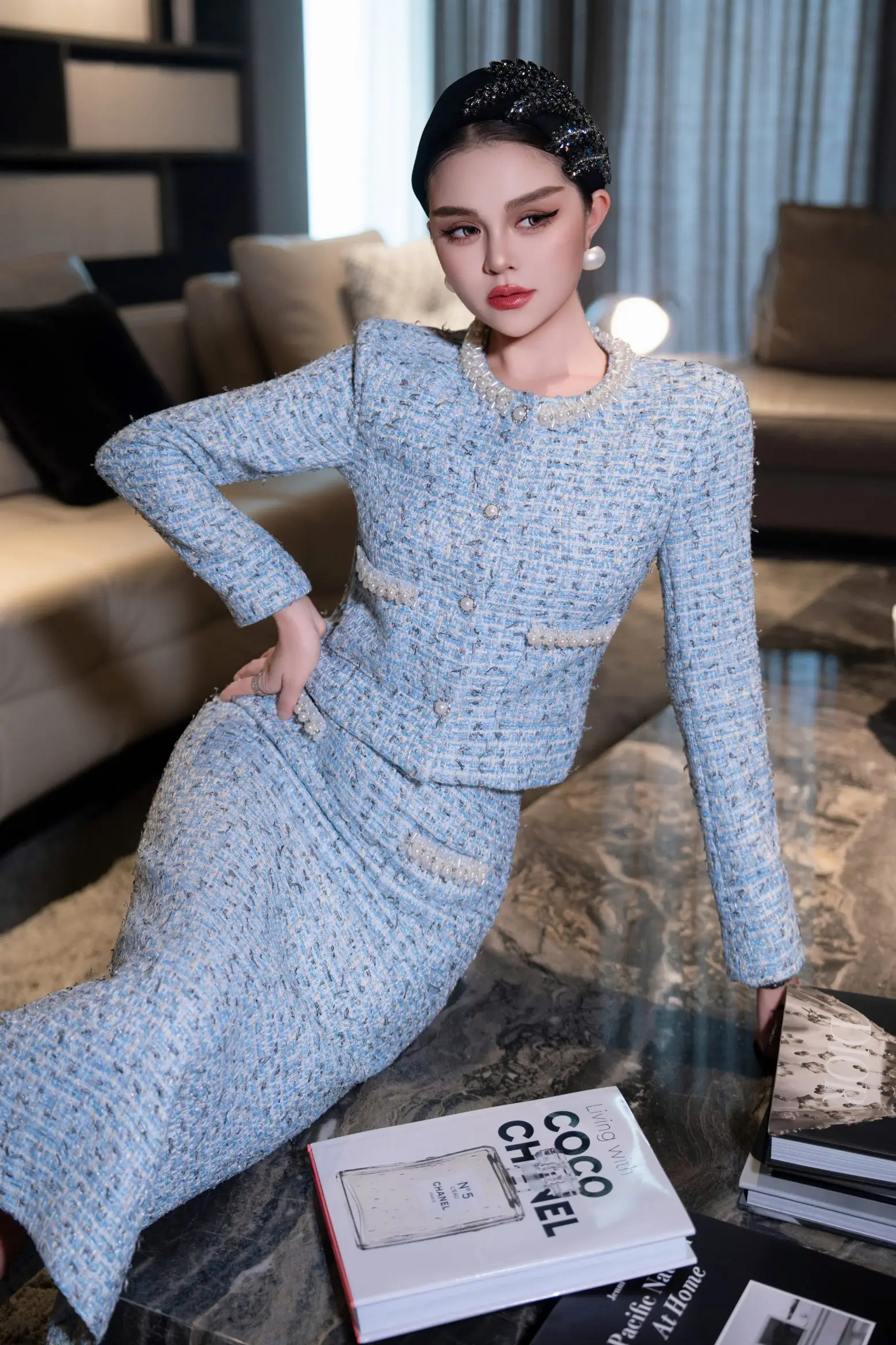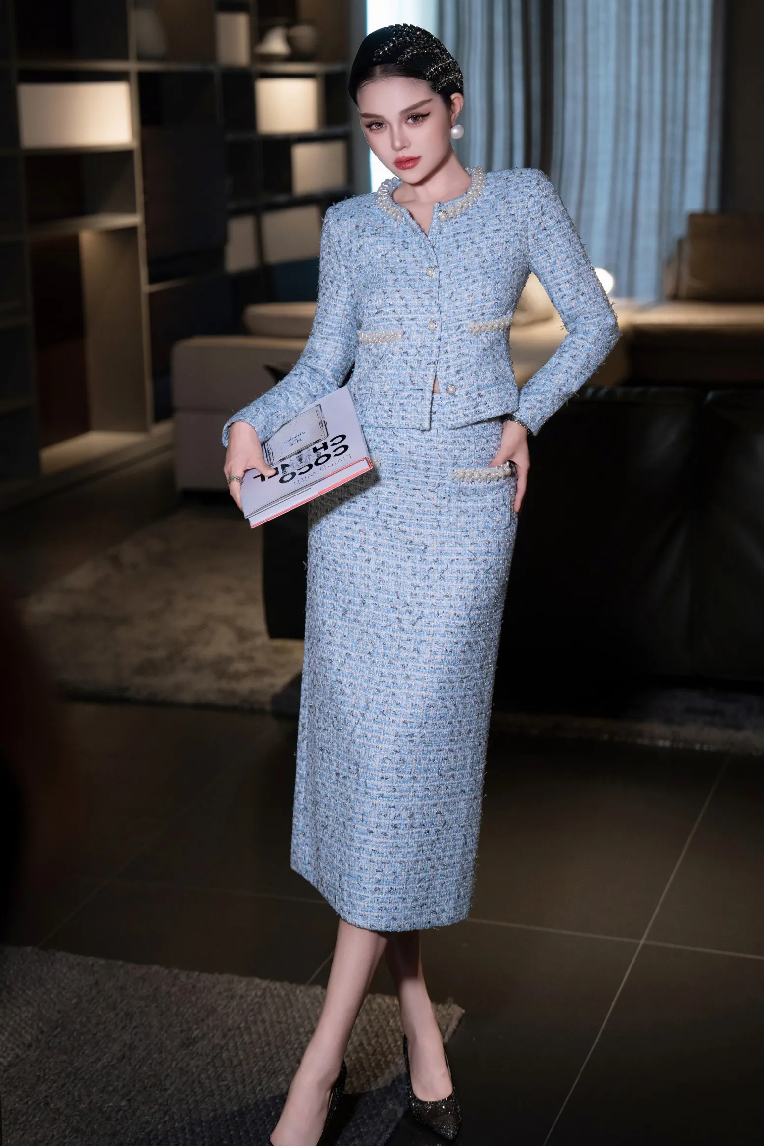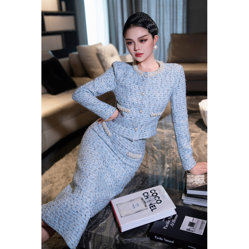 ZJYT Elegant Luxury Pearls Beading Tweed Jacket and Long Skirt Suit Autumn Winter Womens Two Piece Outfit 2025 Party Dress Sets