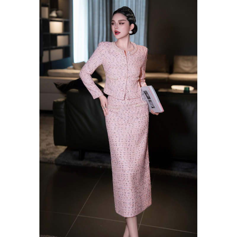 ZJYT Elegant Luxury Pearls Beading Tweed Jacket and Long Skirt Suit Autumn Winter Womens Two Piece Outfit 2025 Party Dress Sets