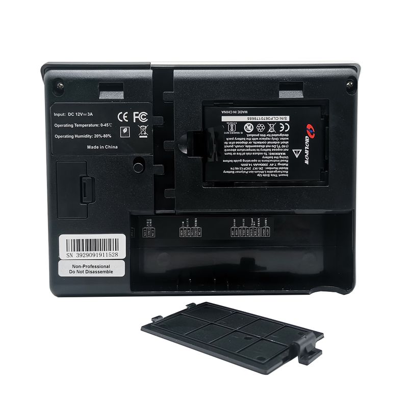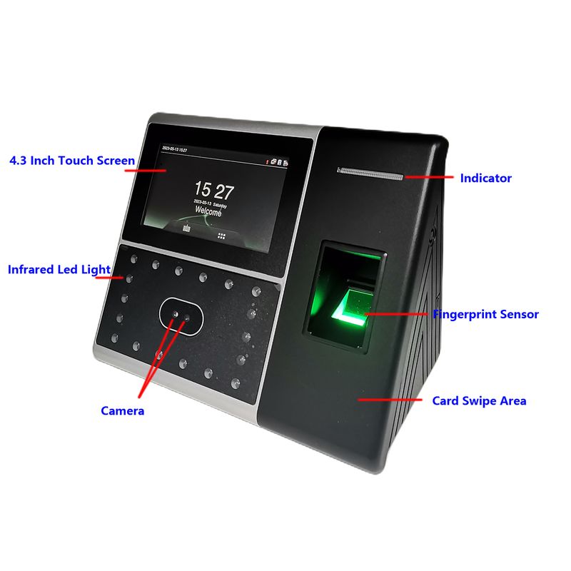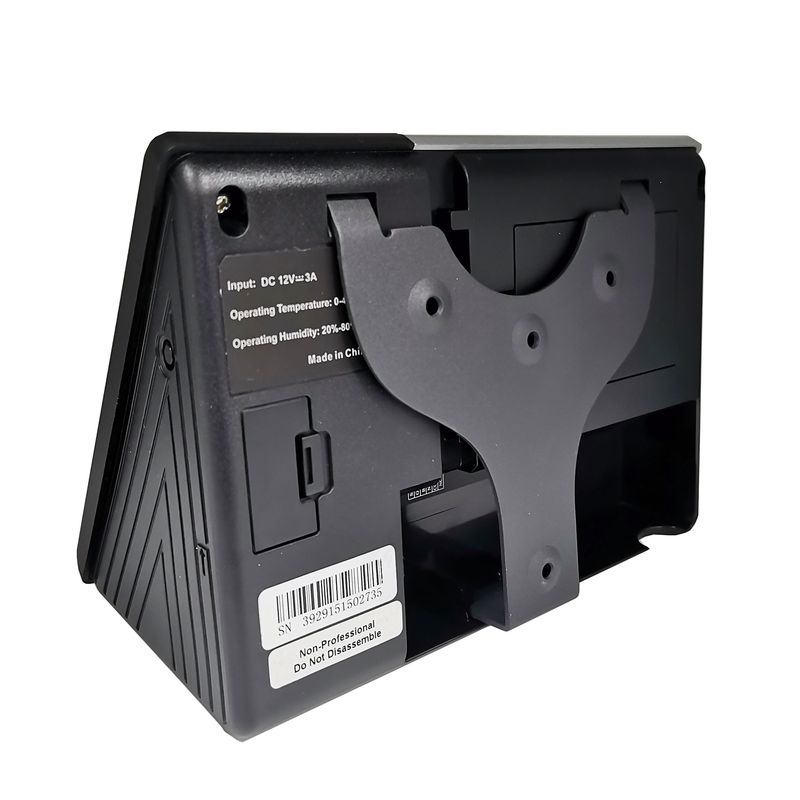 Time attendance Standard functions:Automatic Status Switch, Self-Service Query, Work Code, T9 input, 9 digit user ID, Photo-ID, Scheduled-bell. 2000mAh backup battery