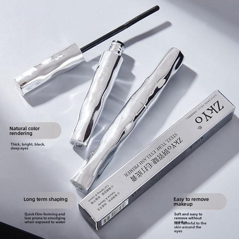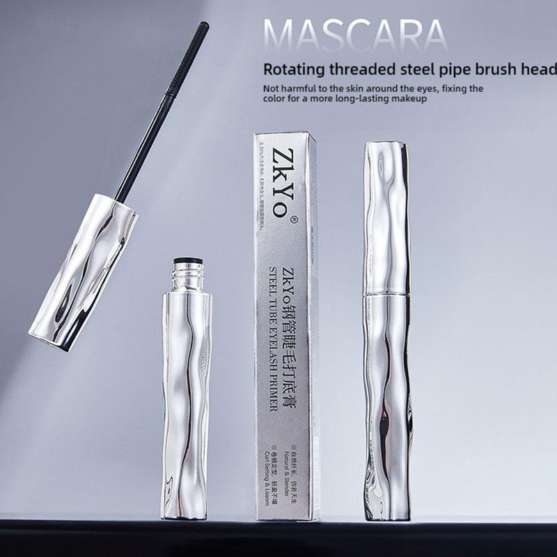 ZkYo Steel Tube Eyelash Primer Natural Black Mascara 3D Thick And Fluffy Waterproof Non-Smudging Women Eye Makeup