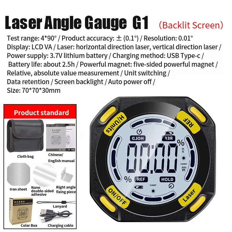Equipped with a magnetic base goniometer, this tool provides stability and accuracy on various surfaces, making it ideal for construction and DIY projects.