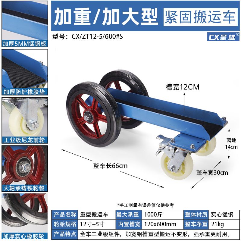 ZML Push Cart Marble Two-Wheel Transport Tool Door Window Glass Four-Wheel Cart