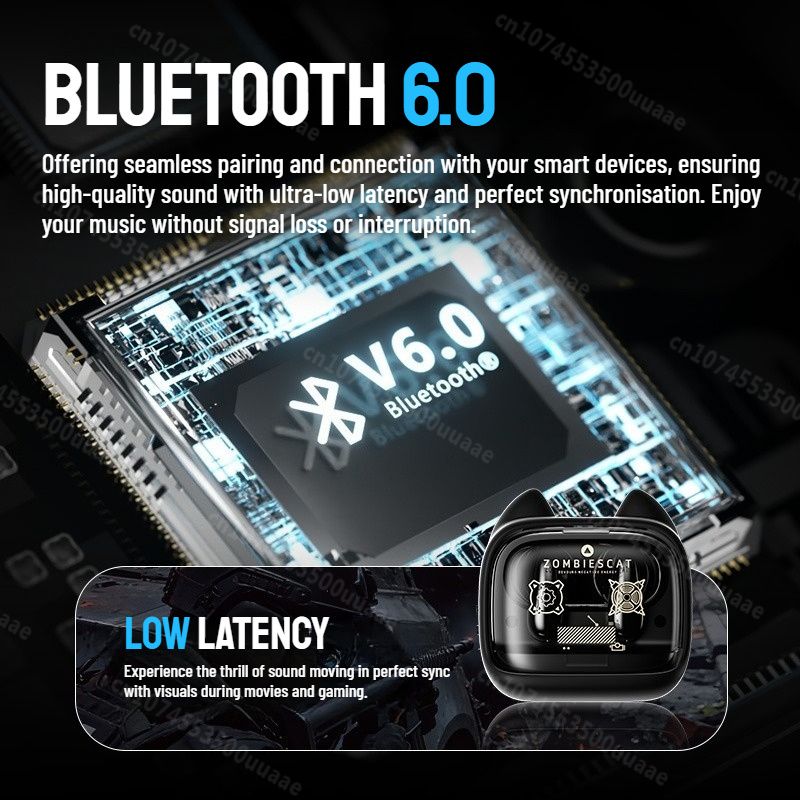 Zombies Cat B19 Smart Touch Screen Earphone HiFi Stereo Bluetooth 6.0 Headphones ENC Call Noise Reduction TWS Wireless Earbuds