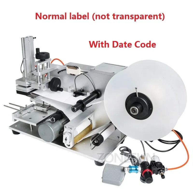 ZONESUN LT-60D Semi Automatic Flat Labeling Machine with Date Code for Plastic Glass Bottle Box Jar Packaging